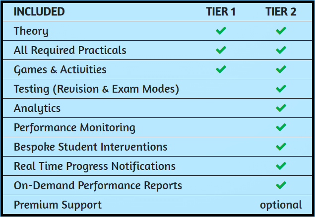 For schools, tutors and parents! Get access to the best online science platform for your GCSE students, including ALL Required Practicals, testing, performance analytics and progress tracking. Click here for more details.